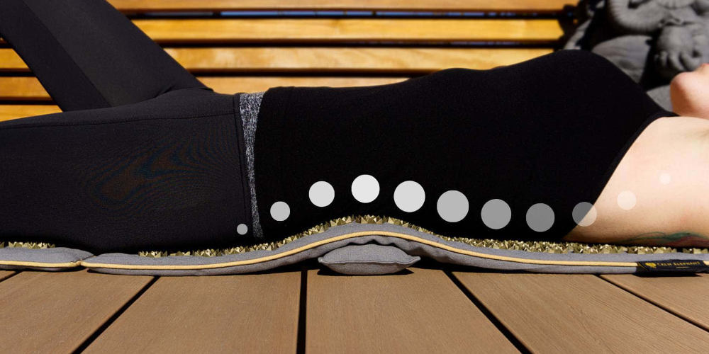 - schließt die Lücke im Hohlkreuz, die sonst mit ausgestreckten Beinen auf einer flachen Akupressurmatte entsteht.