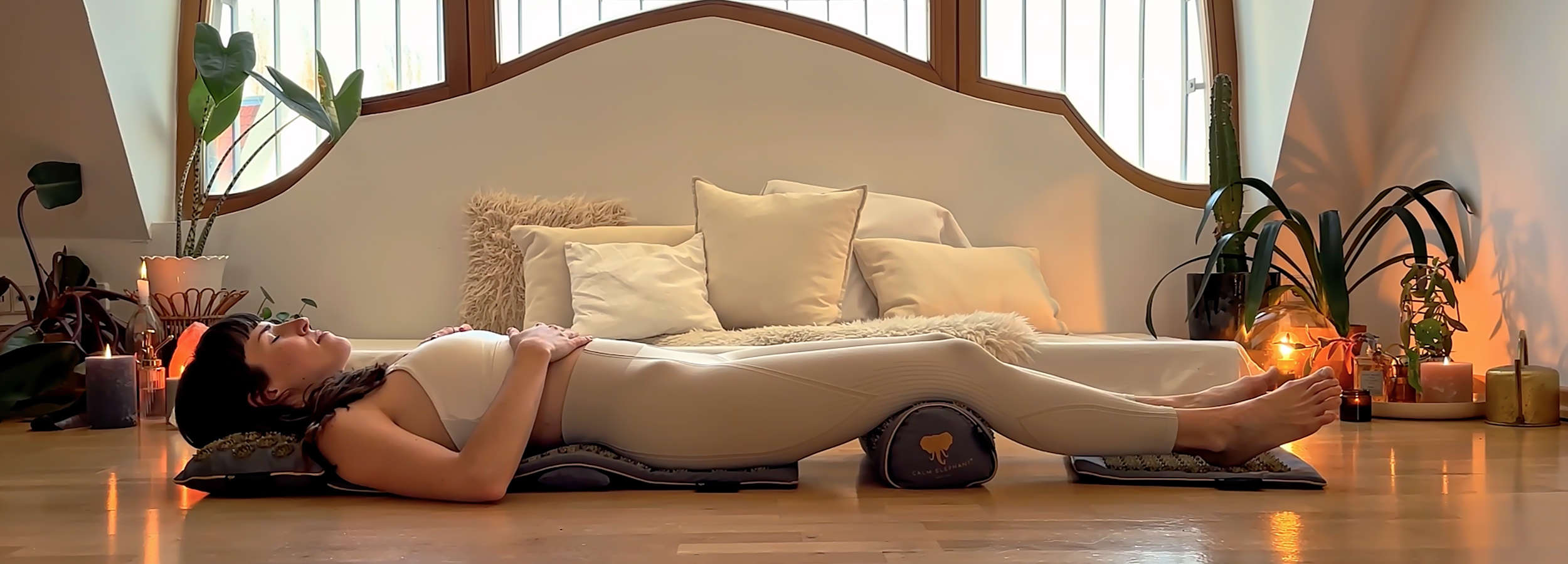 Wir empfehlen dir während einer Anwendung mit unserer Akupressurmatte zudem eine ruhige Atmosphäre ohne Störungen, gedämpftes Licht und unsere wohltuende CALM ELEPHANT ORIGINAL Entspannungsplaylist, die mit ihren sanften Klängen zu einem rund um Sorglos-Paket beiträgt!